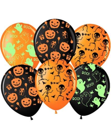 Одним из основных элементов декора на Хэллоуин являются шары в виде нарисованных на них ужасающих лиц, черепов, пауков и других монстров. Также популярны шары с изображением призраков, вампиров, зомби и других существ, связанных с мистикой и ужасами.